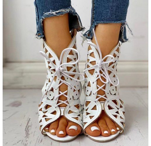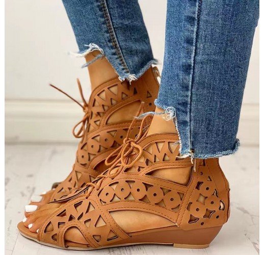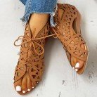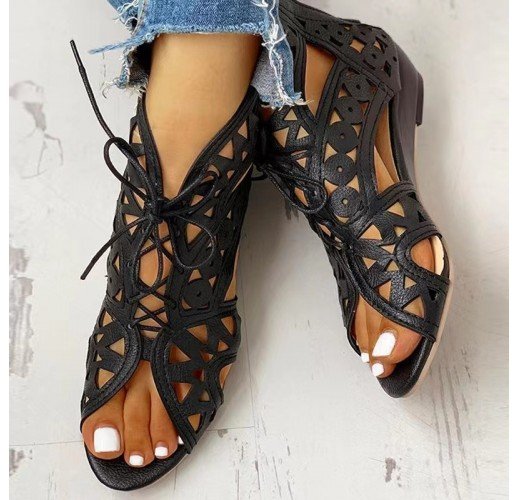 Cutout Sandals Women Fashion Low Heel Lace-up Shoes Summer