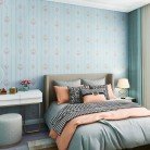 Pattern and color: elegant yellow, light blue, rice flour, southern flowers on the table, bright glow on the table, blue bridge on the smoke wave, autumn fragrance on the smoke wave