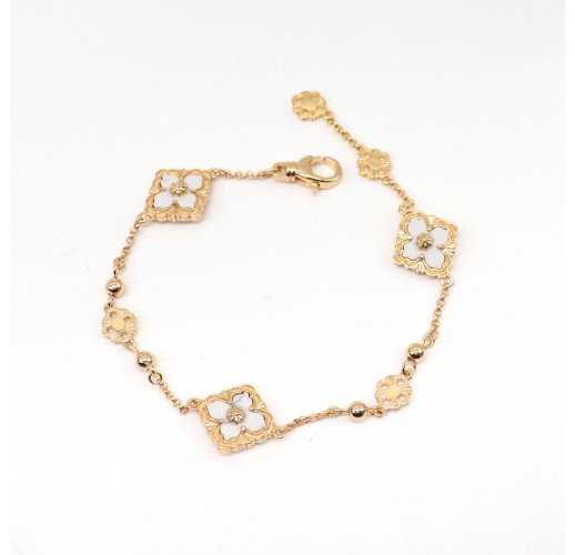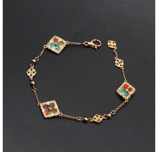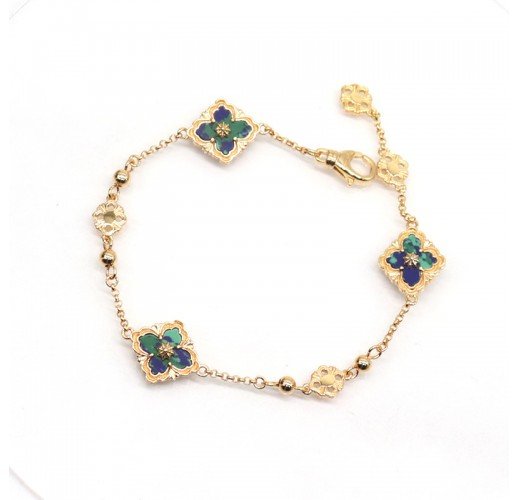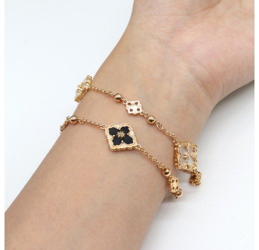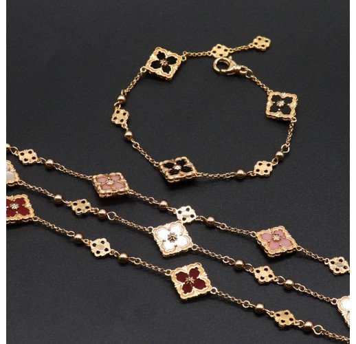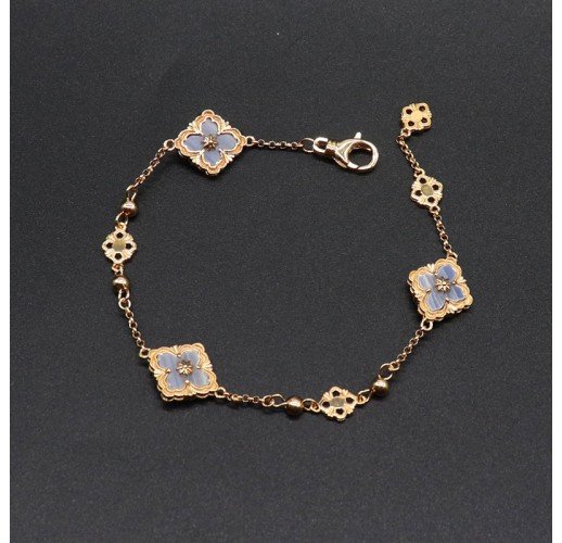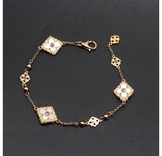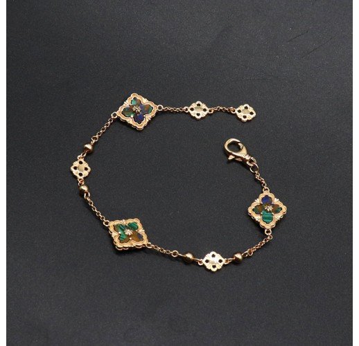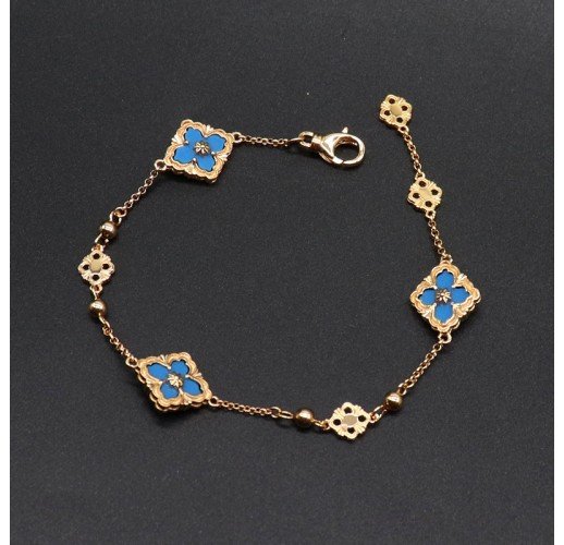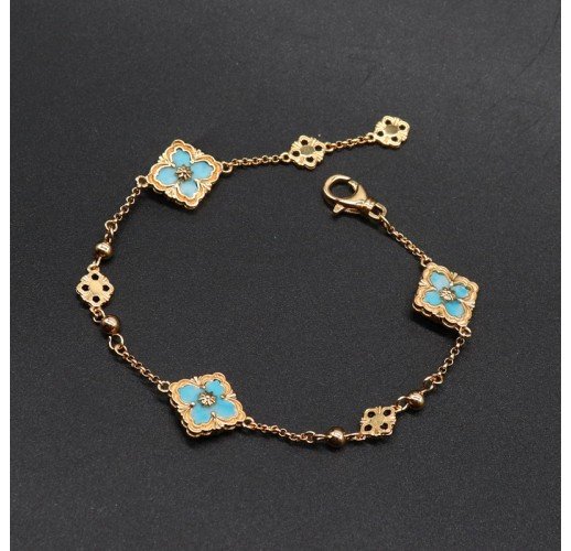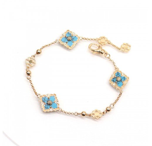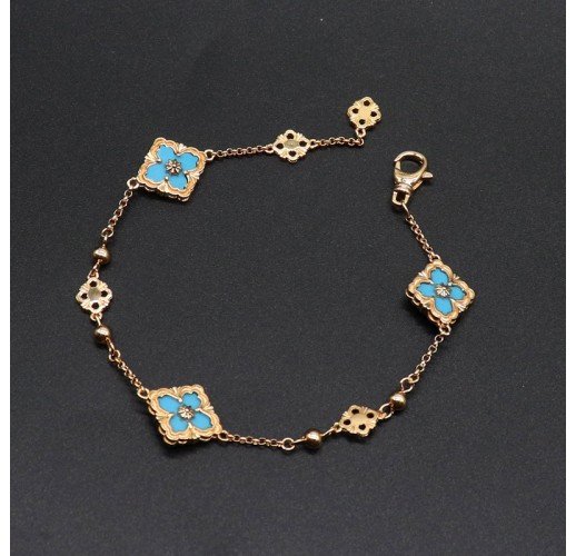 Setting: Diamond-set white shell, synthetic turquoise, etc.