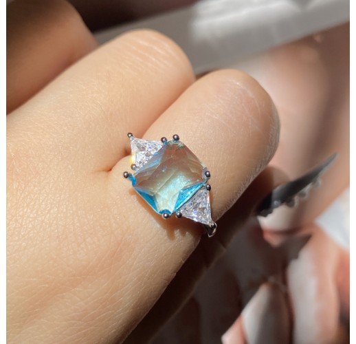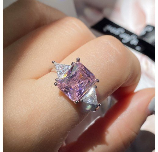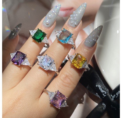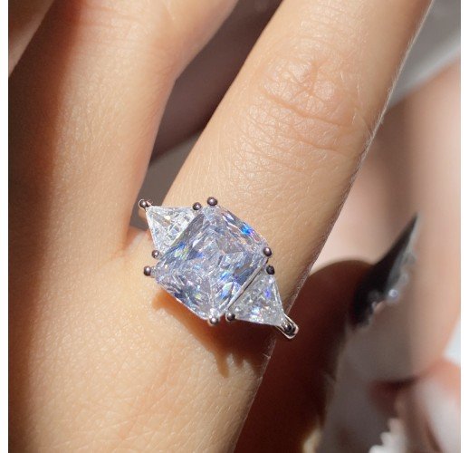 Women's Fashionable Simple Triangle Shaped Radiant Imitation Moissanite Ring