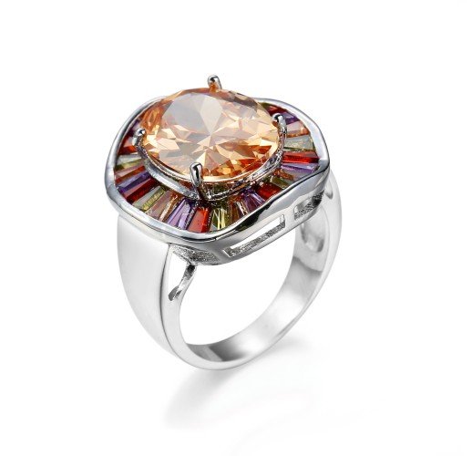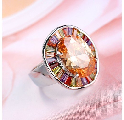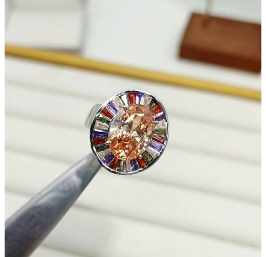 Bridal Big Round Colorful CZ Finger 925 Sterling Silver Rings