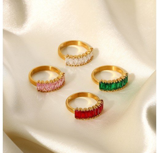 18K Gold-plated Half Ring Rectangular Zircon