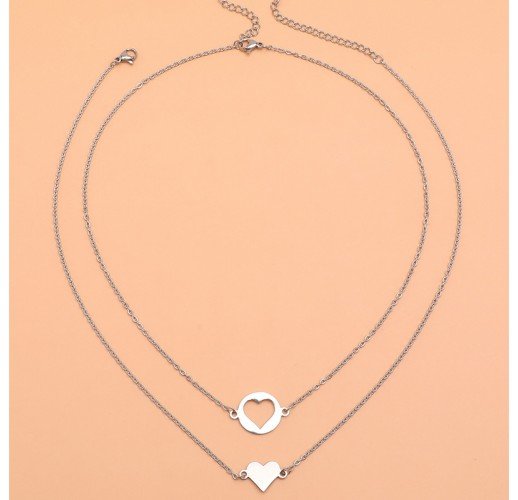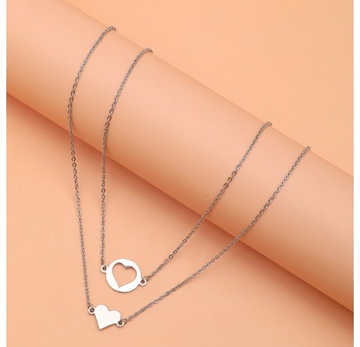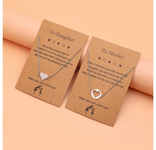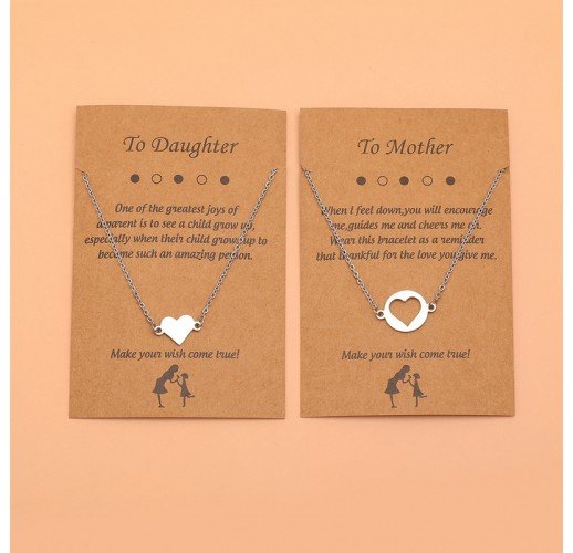 Creative Mother's Day Stainless Steel Love Collarbone Necklace 2-piece Set
