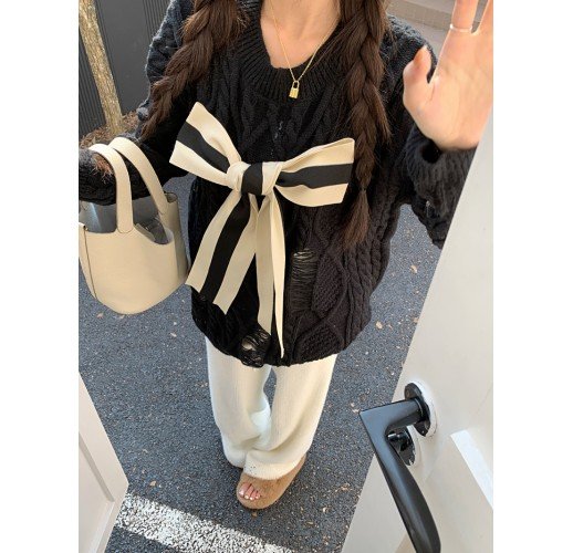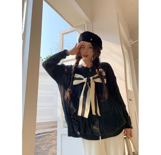 Thin Bow Hole Sweater Fashion Loose