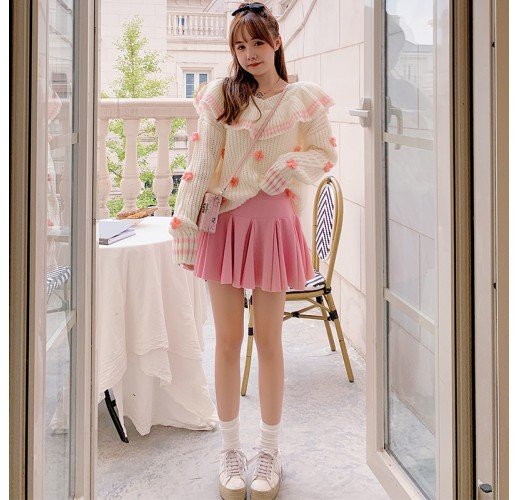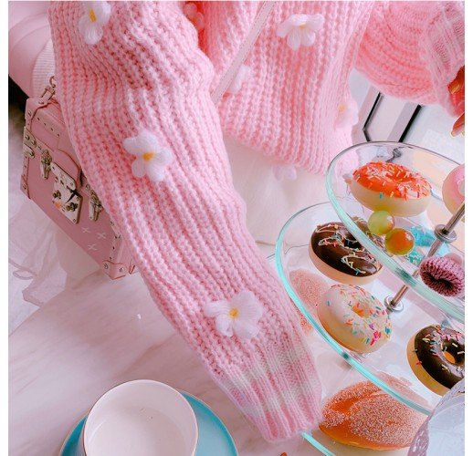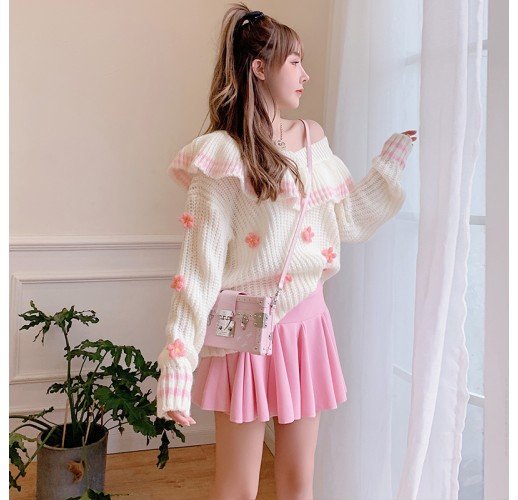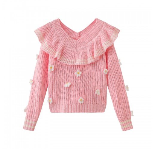 Three-dimensional Flower V-neck Ruffle Thickened Sweater