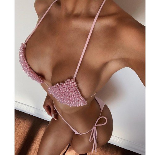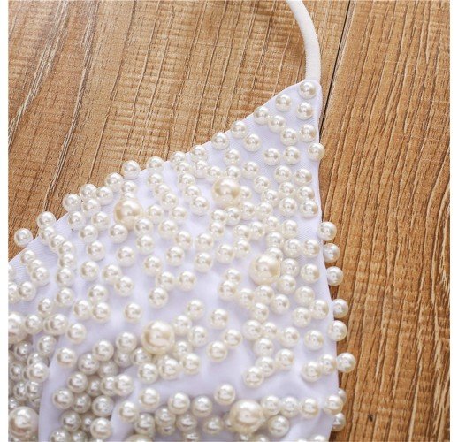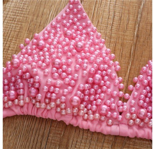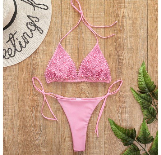 Women's Fashion Solid Colour Triangle Beaded Bikini