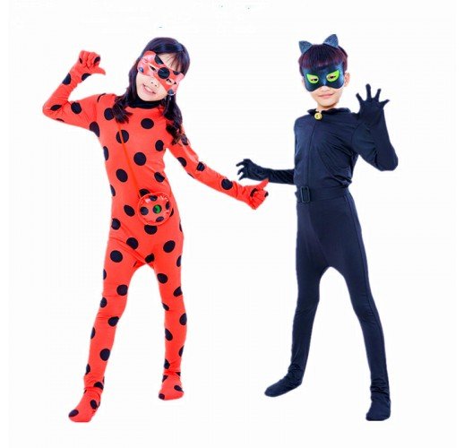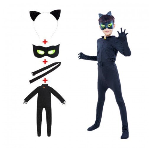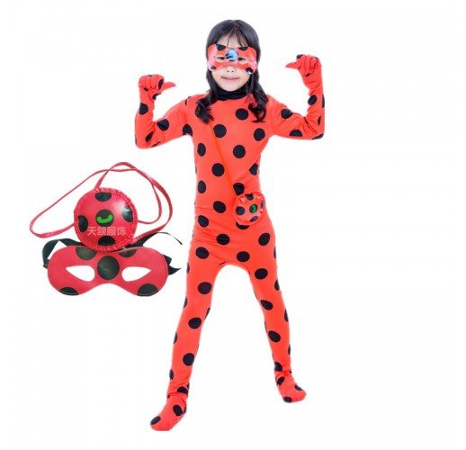 Color: ladybug clothing bag eye mask, black cat suit, ladybug wig