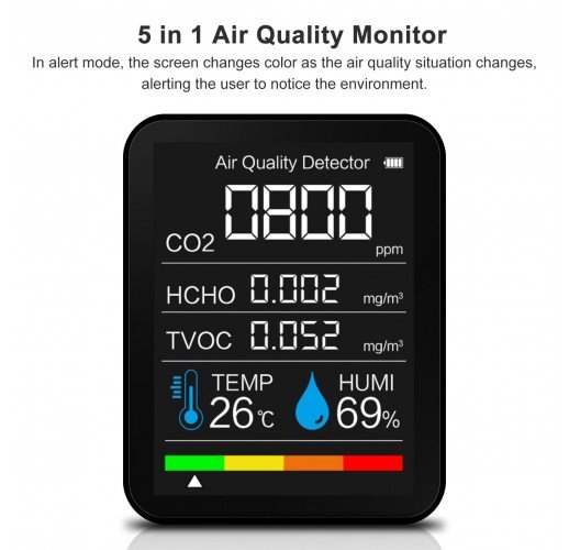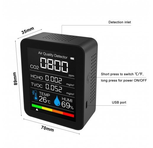 Carbon Dioxide Detector Temperature/Humidity Air Quality Monitor Digital CO2 Meter Formaldehyde Detector Air Analyzer for CO2/HCHO/TVOC Accurate Tester Kit